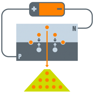 发光二极管(LED)是一种半导体设备,当电流通过它时,可以发出光。为此,来自P型半导体的孔与N型半导体的电子重组以产生光。发出的光的波长取决于半导体材料的带隙。具有较强分子键的较硬材料通常具有更宽的带隙。氮化铝半导体被称为超宽带隙半导体。